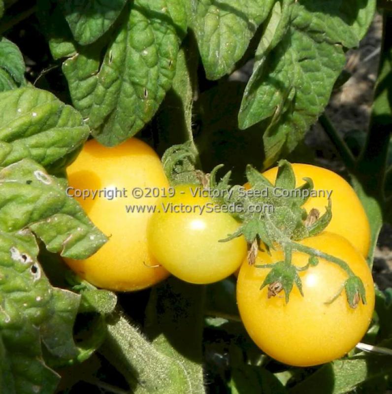 'Dwarf Desert Star' has vigorous, bushy, rugose, potato leaf plant that reach three to four feet in height and produce high yields of nearly round, one-ounce, pale yellow colored cherry tomatoes with a balanced, sweet flavor. An excellent salad or snacking tomato.