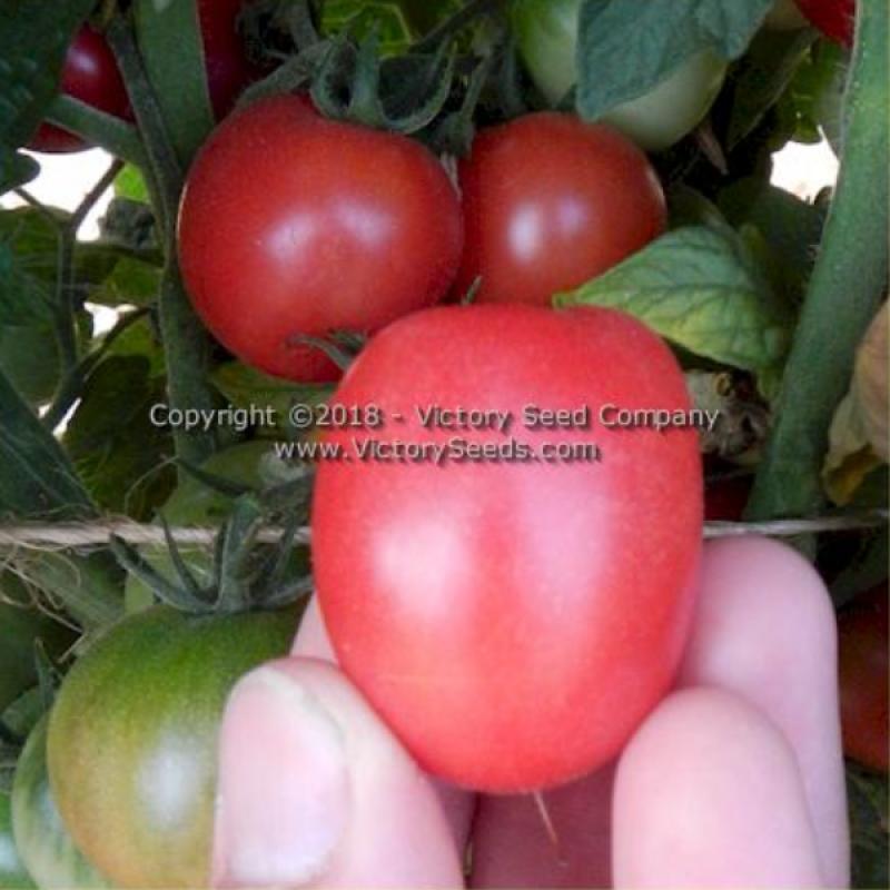 dwarf — 'Dwarf Bendigo Rose' has rugose, regular-leaf plants that produce lots of globe to slightly plum shaped, pink colored, large cherry-type tomatoes that average about one to two ounces each and are very tasty. Excellent in salads and for snacking.