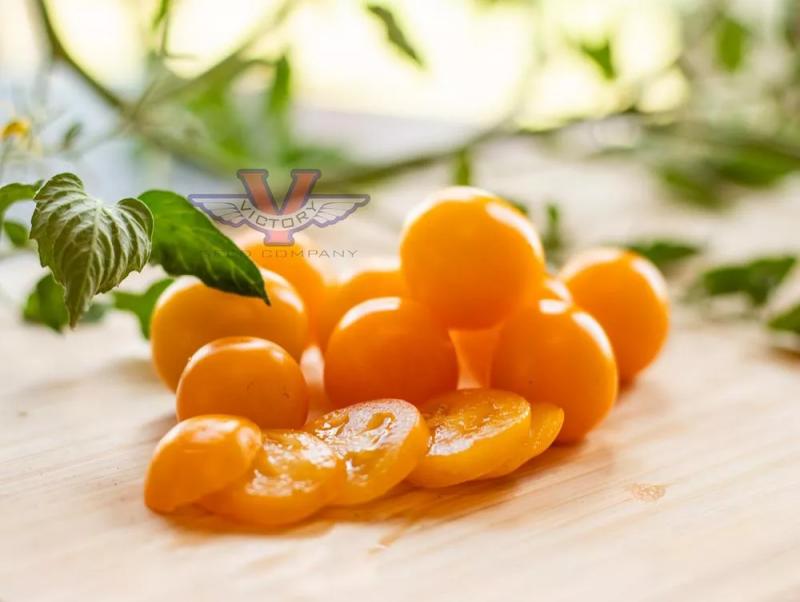 Esterina F1 produces small, bright yellow, round fruits averaging 0.5 to 1 ounce. The fruits are large for a cherry, around 1 to 1.5 inches across. Esterina is known for its sweet flavor, and the fruit is best used for snacking or adding color and taste to salads. Plants are vigorous and require caging or trellising. Fruits appear in large, abundant clusters throughout the season. The fruit is highly resistant to cracking